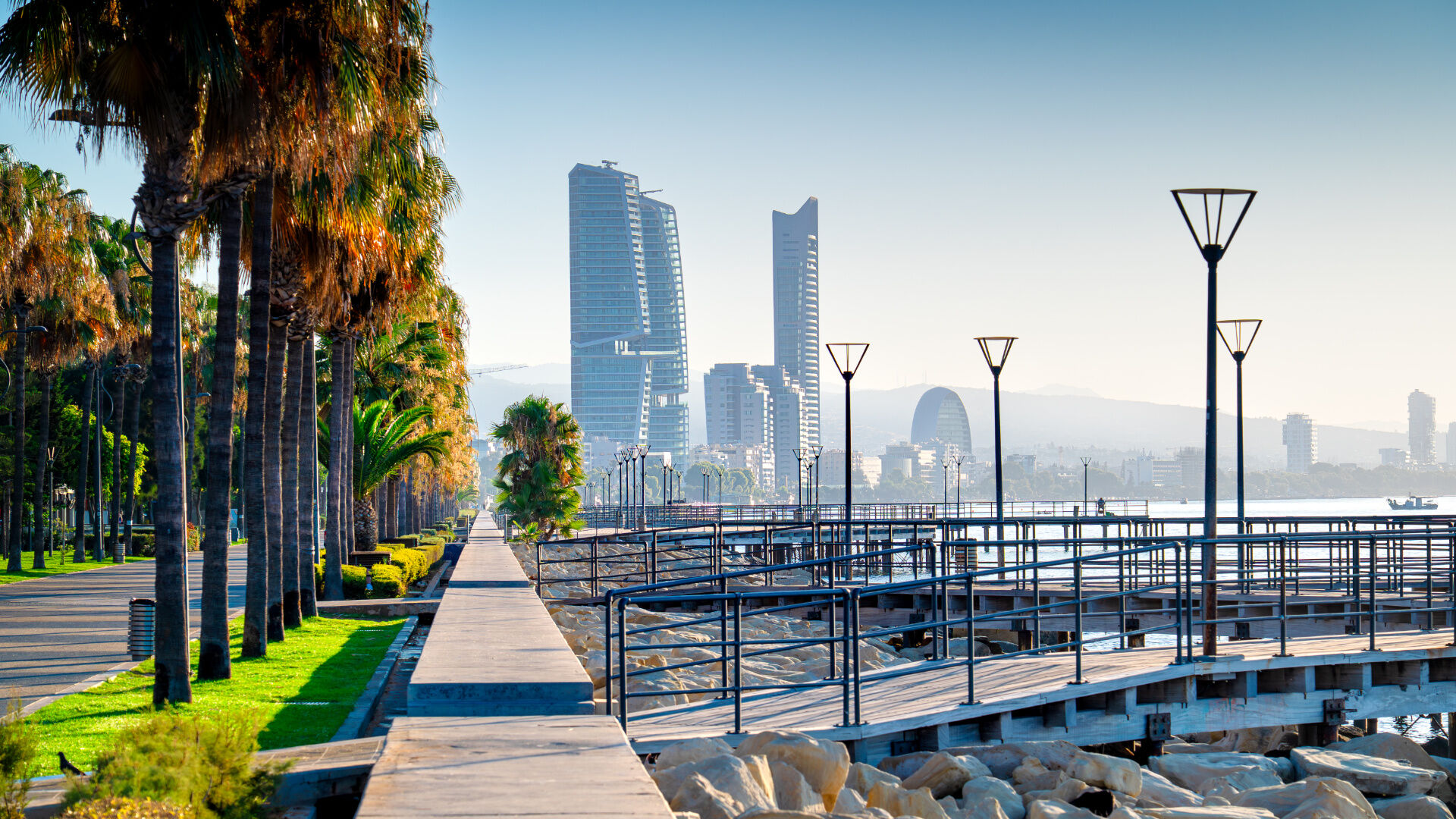 7. Limassol z portem, panorama Limassol wzdłuż promenady